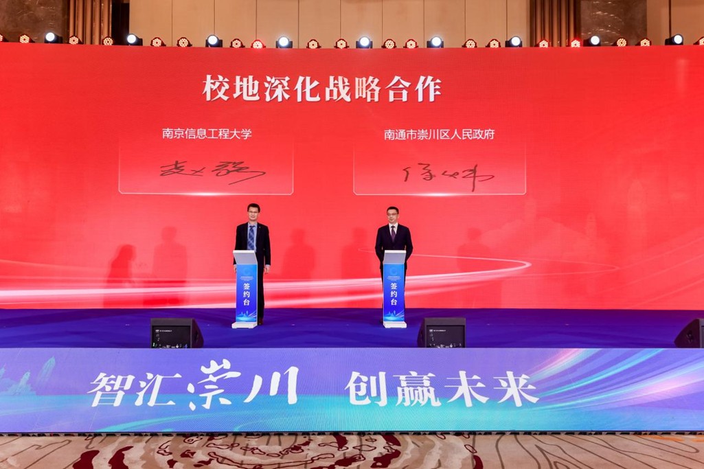 会上,赵强与崇川区人民政府副区长徐炜共同签署校地深化战略合作协议,与崇川区委副书记、市北高新区党工委书记徐海燕共同签署“双高协同”创新发展合作项目。根据协议内容,我校将充分发挥在集成电路、电子信息、人工智能、气象环境、节能环保等学科领域的科研优势,紧密结合崇川区在集成电路、智能装备等主导产业方面的坚实基础,持续深化“高校研发+地方承载+市场运作”的协同创新机制,为崇川区打造长三角北翼创新高地提供有力支撑。