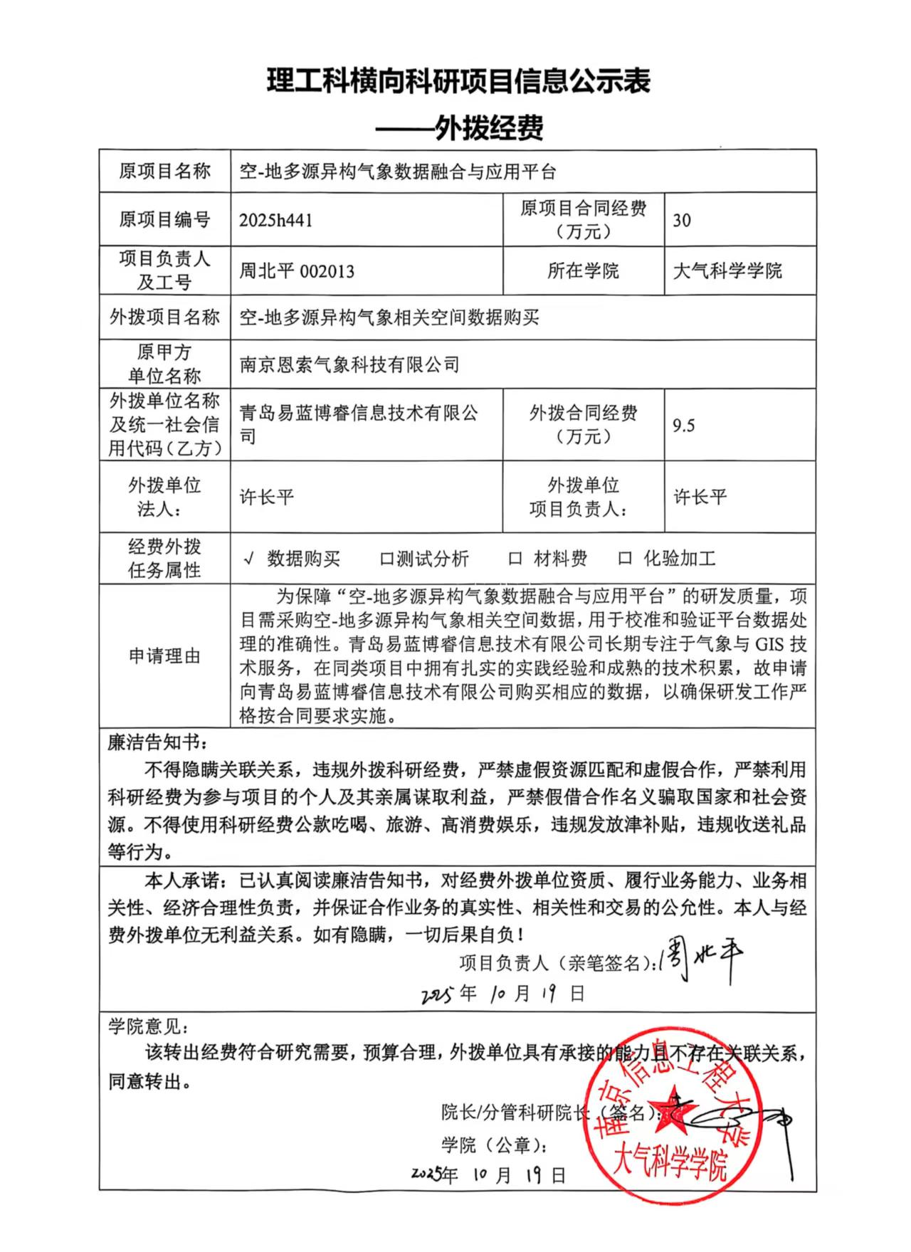根据我校科研项目外拨经费管理要求,理工类横向项目外拨须进行公示,公示期5个工作日。现对我校拟外拨横向项目有关事项公示如下: