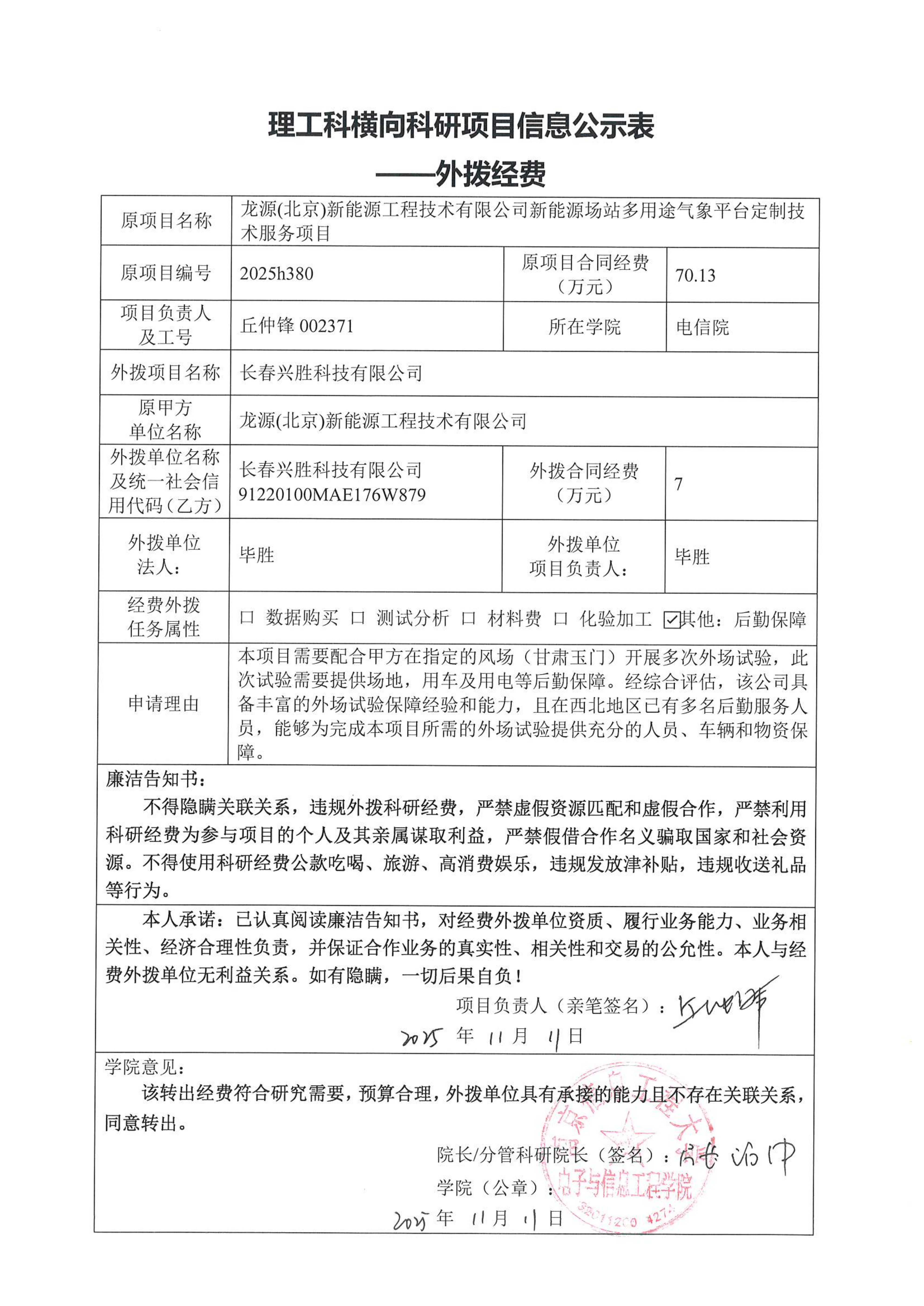 根据我校科研项目外拨经费管理要求,理工类横向项目外拨须进行公示,公示期5个工作日。现对我校拟外拨横向项目有关事项公示如下: