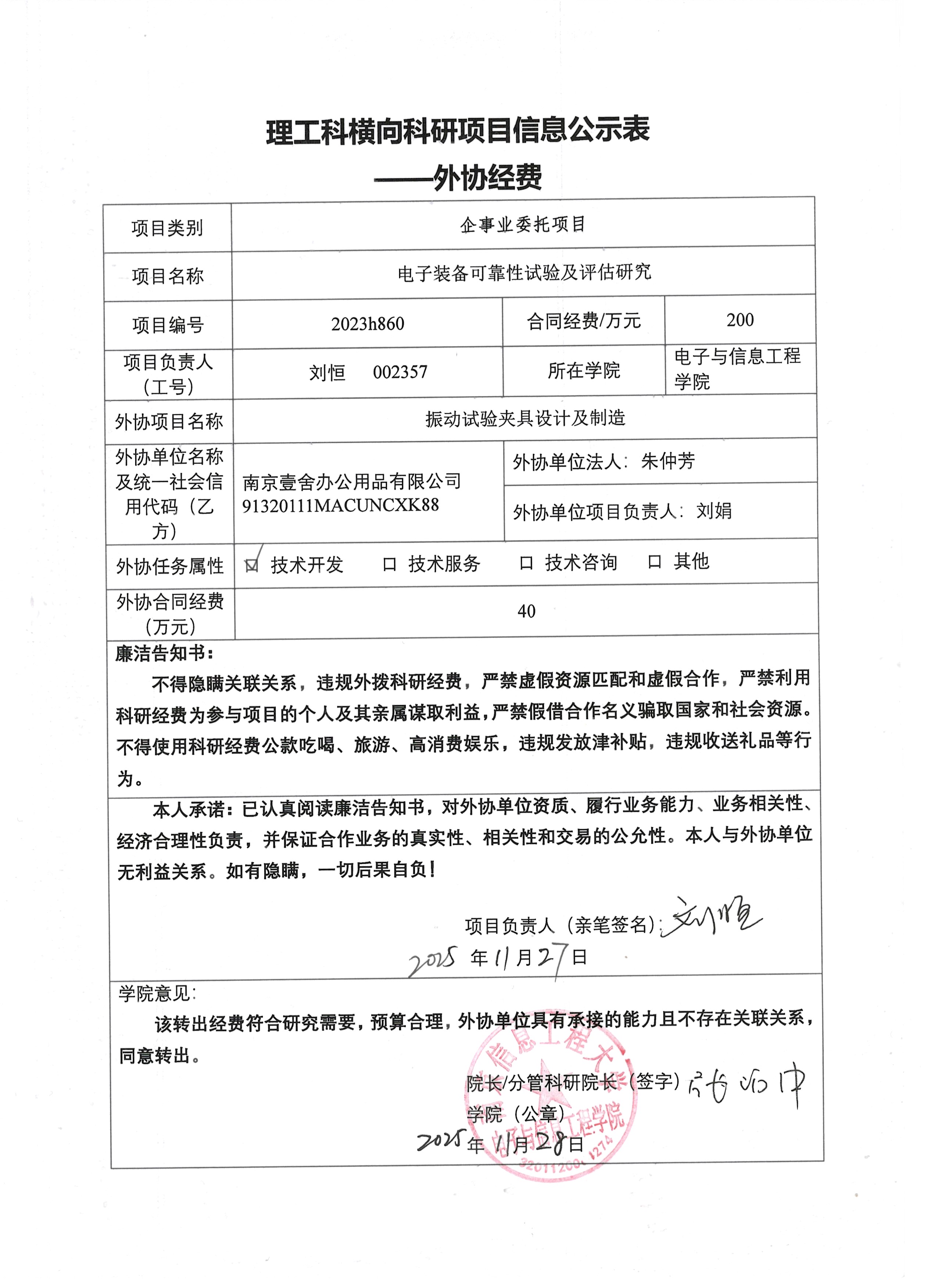 根据我校科研项目外协经费管理要求,理工类横向项目外协须进行公示,公示期5个工作日。现对我校拟外协横向项目有关事项公示如下: