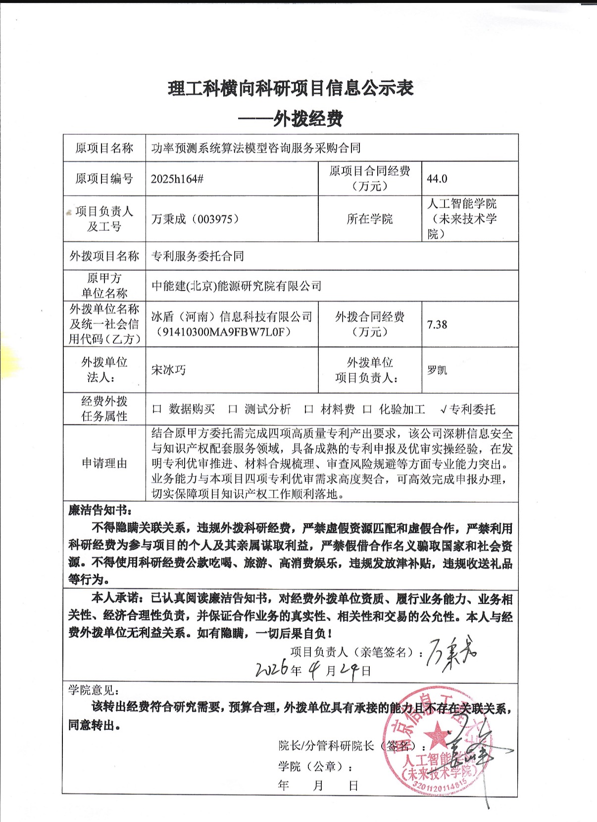 根据我校科研项目外拨经费管理要求,理工类横向项目外拨须进行公示,公示期5个工作日。现对我校拟外拨横向项目有关事项公示如下: